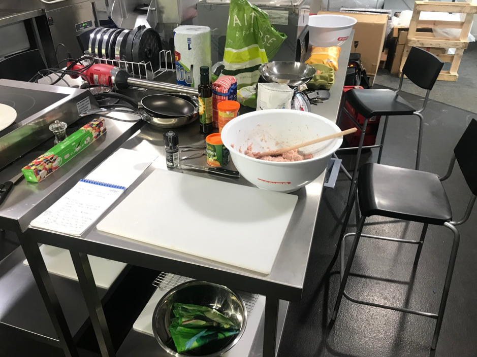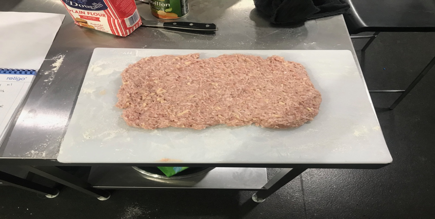 Step Two: Lightly flour a chopping board and place the meat mixture onto the board and then divide into 8 equal sections.