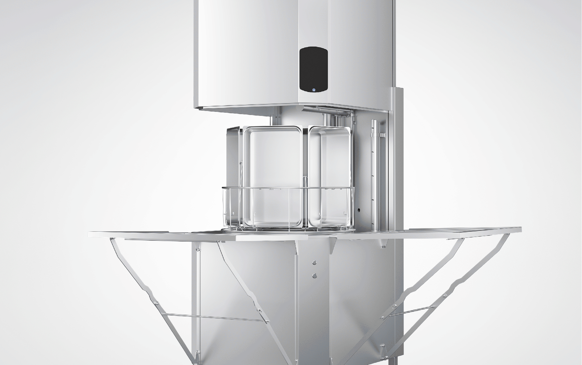 WD-90 DUO is a machine that takes care of both fine and heavily soiled dishes, with or without granules. The machine has an automatic hood and a through-pass, which promotes logistics as well as ergonomics and hygiene.